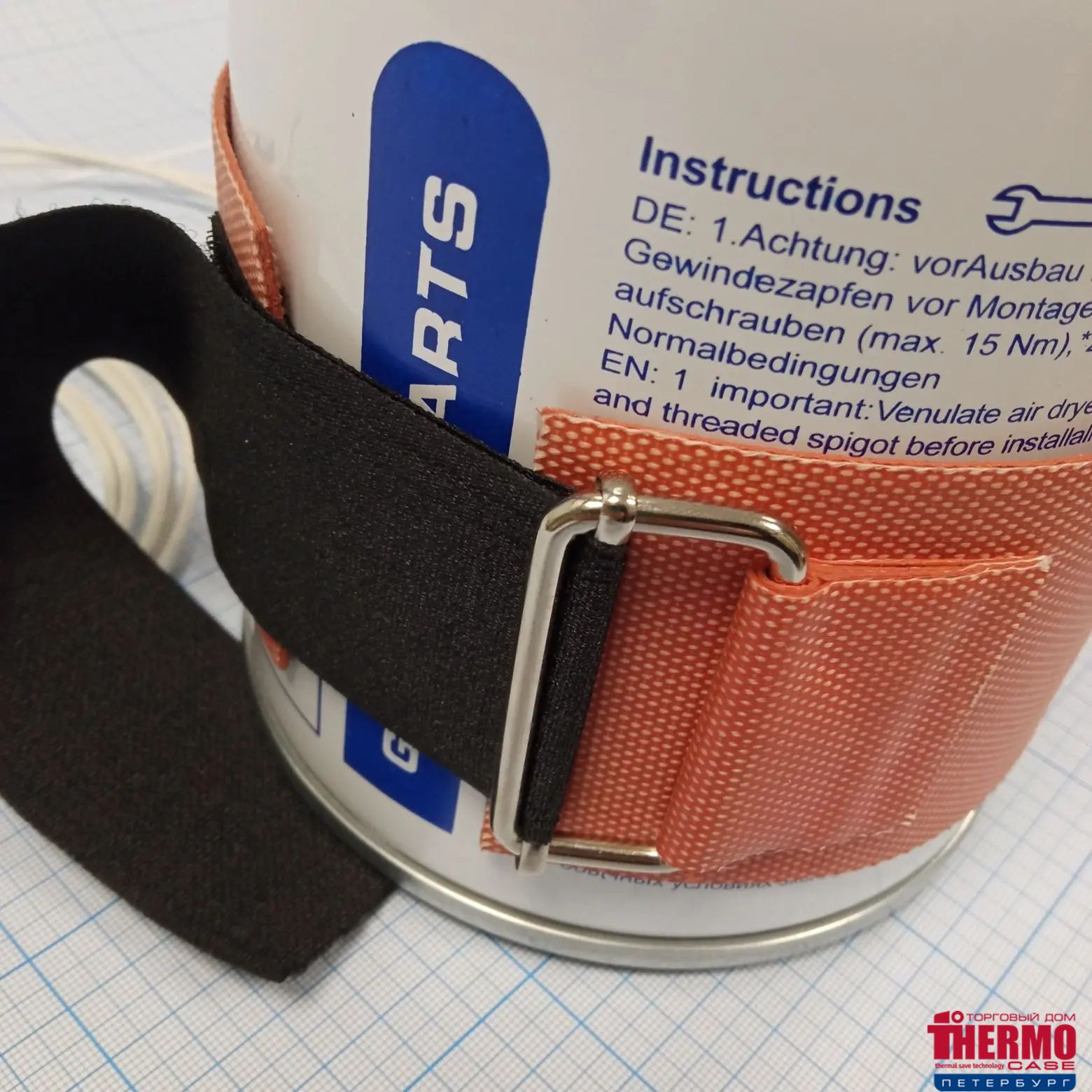 Один на 50 градусов отвечает за нагрев стенки фильтра, а выносной датчик на плюс 10 градусов, включит подогрев только при приближении окружающей температуры воздуха к отрицательной. Удобная застежка фиксатор позволяет без прочих крепежных изделий плотно зафиксировать бандаж на корпусе фильтра.