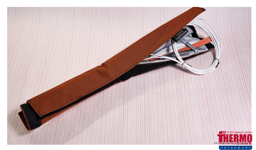 Нагреватель размещается внутри Термочехла в проушины таким образом, чтобы температурный датчик, расположенный на шнуре питания находился внутри чехла, но не соприкасался с поверхностью Нагревателя. Таким образом, достигается защита от перегрева магистрали как с помощью температурного датчики на поверхности Нагревателя, так и за счет соблюдения микроклимата внутри Термочехла.