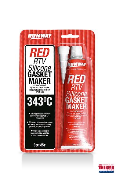 Высокотемпературный силиконовый герметик-прокладка RUNWAY предназначен для быстрого ремонта узлов и агрегатов, работающих в условиях повышенных температур и постоянном контакте со смазочными материалами. Используется для клапанной крышки, помпы, термостата, дверей и крышки багажника, трубопроводов, глушителя. Заполняет мельчайшие трещины, обладает хорошей адгезией, эластичностью и упругостью. Устойчив к воздействию атмосферных осадков и химикатов, не подвергается коррозии. Диапазон рабочих температур от -62 до +343 градусов С.